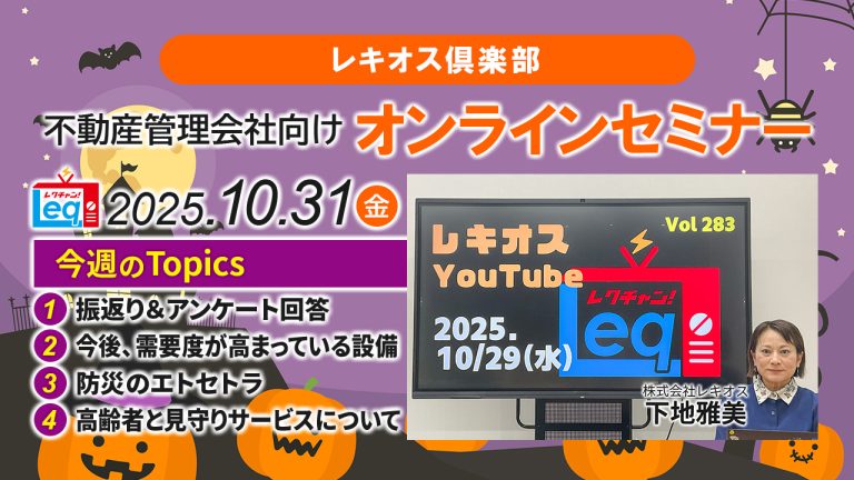 内  容:①先週の振返り&アンケート回答 ②今後需要度が高くなる設備とは!? ③もしもの備えに…!防災エトセトラ ④高齢者と見守りサービス
