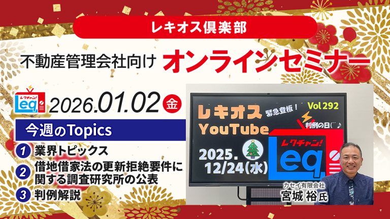 賃貸不動産経営管理士試験合格発表に関する情報や、以前ピックアップした借地借家法の更新拒絶要件に関する調査研究所の公表に関する事に対しての宮城先生側の意見をお話ししております💭